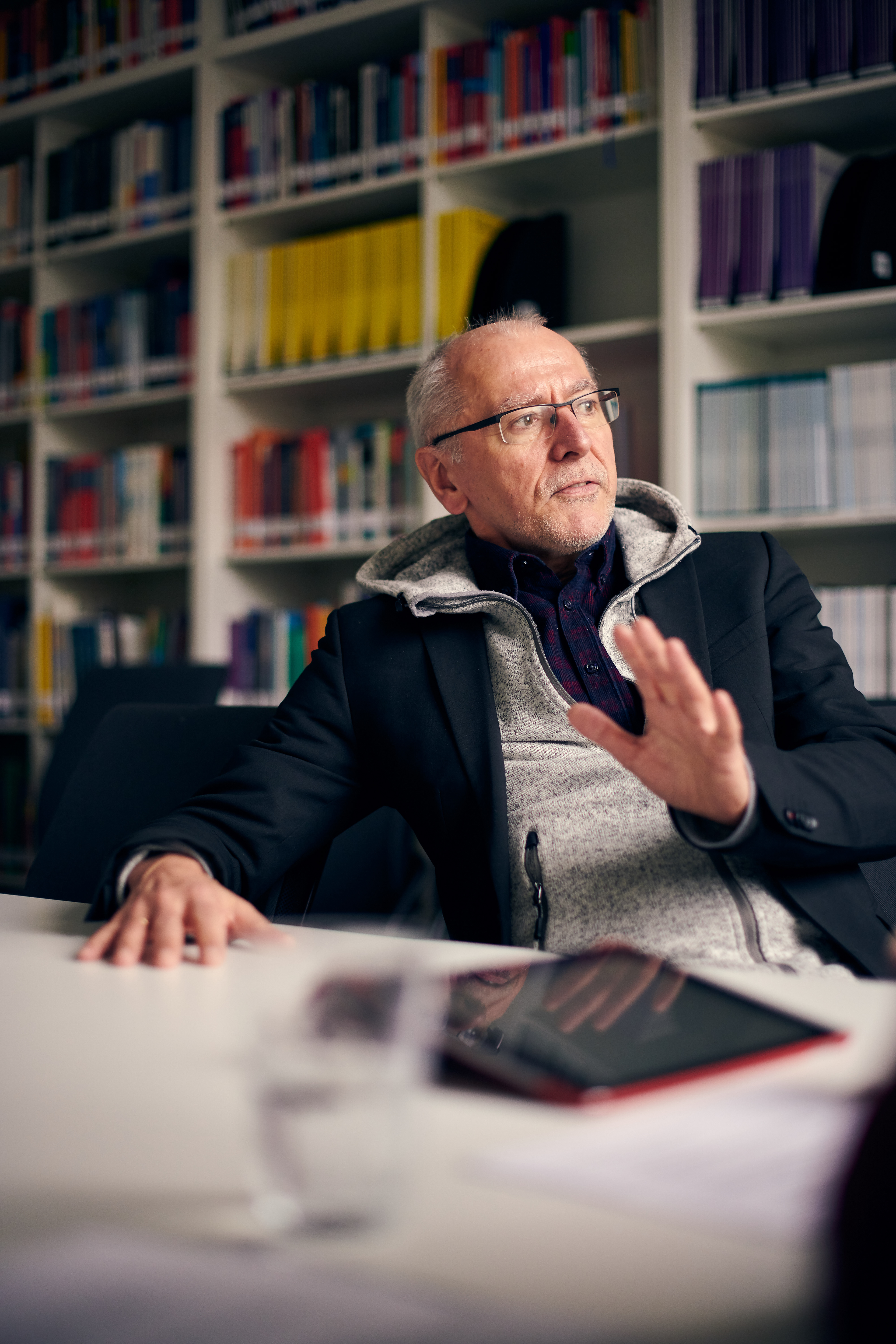 Der Physiker und Philosoph ist Universitätsprofessor und leitet das Büro für Technikfolgenabschätzung. Er berät den Bundestag und hat gerade sein Buch "Der unterlegene Mensch" veröffentlicht. Wir treffen ihn am KIT, dem Karlsruher Institut für Technologie bei Tamim Asfour, der intelligente Roboter entwickelt.